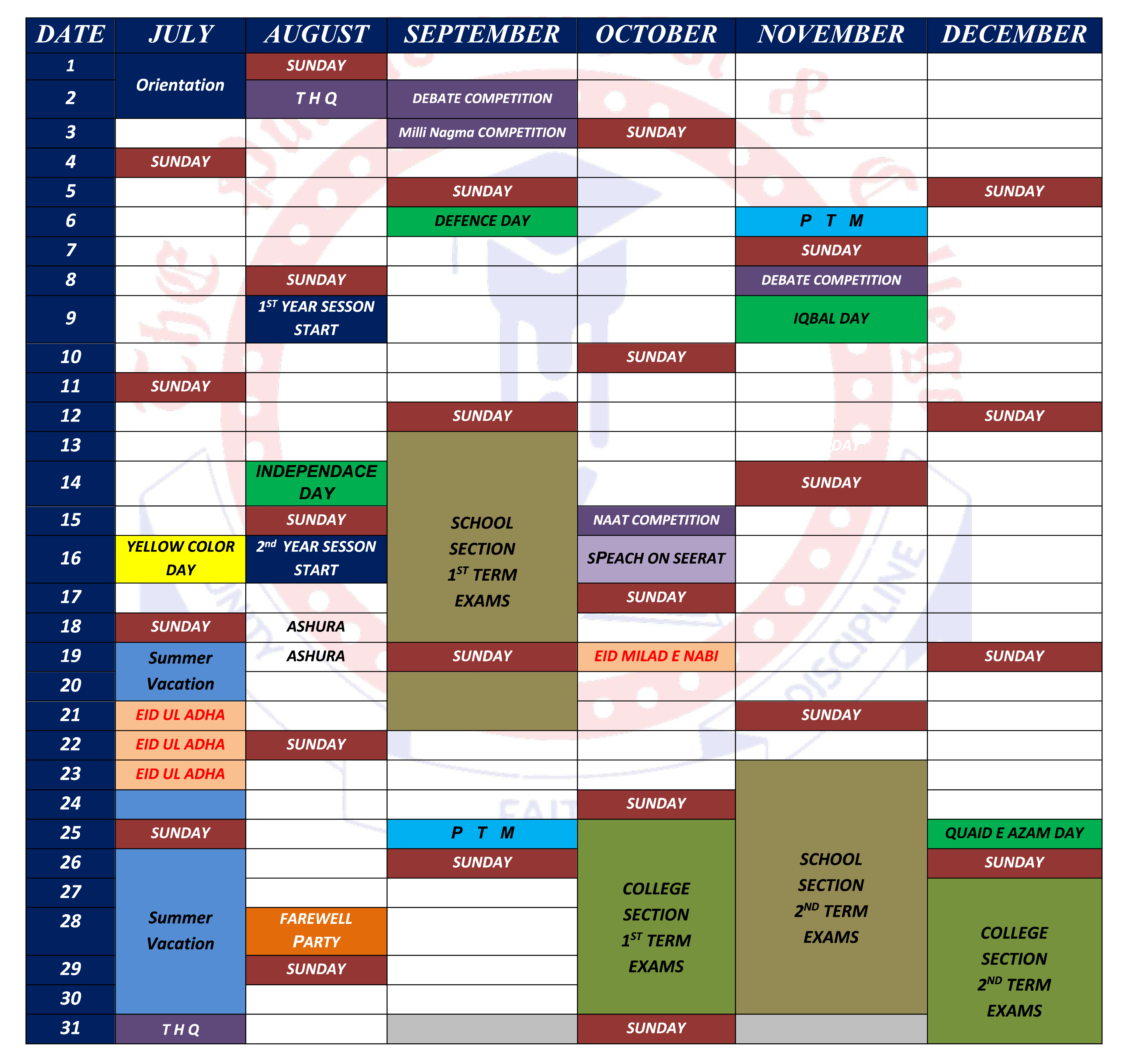 Academic Calender